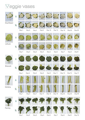 My research showed that storing vegetables in water, like flowers, will keep them fresh much longer. For this, I designed Veggie Vases to store many types of vegetables.