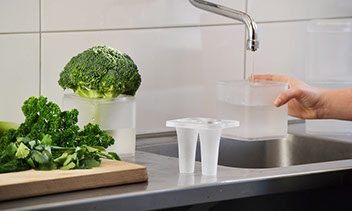 Veggie Vases will fit in any refrigerator door without spilling water. For bigger vegetables we have vases to go on a shelf. Another big benefit is that you can easily see the fresh vegetables, which prompts using them.