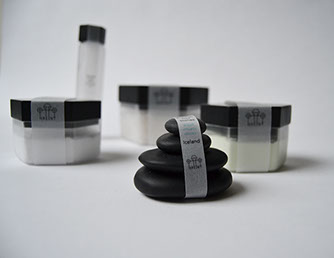 Hreint is a souvenir for Iceland in which I made use of the available resources and created something for relaxation. In Iceland a lot of people make use of spas heated by geothermal heating and the most famous one is the Blue Lagoon. This wellness set, Hreint, is referring towards this habit; it was developed to provide one with the known feeling of coming at ease within the nature of the Icelandic home. In this set I used natural materials available in Iceland like basalt stone, sea salt, silica algae mud and Angelica Archangelica massage oil. The overall shape that is used, is the hexagon. This shape is related to shape of the basalt pillars in Iceland.