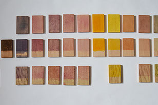 I carried out a research project towards the treatment and coloring of wood. I decided to focus on natural pigments of fruits and herbs. For this a lot of experimentation was needed. I wanted to see if it is possible to just use natural materials instead of petroleum based paint.